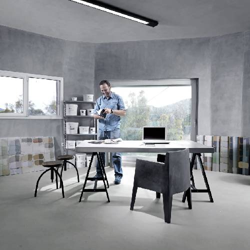 Develine is built to handle the demands of both homes and light commercial spaces. It offers superior abrasion resistance and impact strength compared to many decorative microcement systems, so it won’t show wear patterns as quickly and can handle furniture, carts, and equipment without damage.